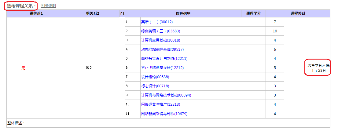 (该选考关系中共有11门课,要求从中选考总学分不低于23分的课程)