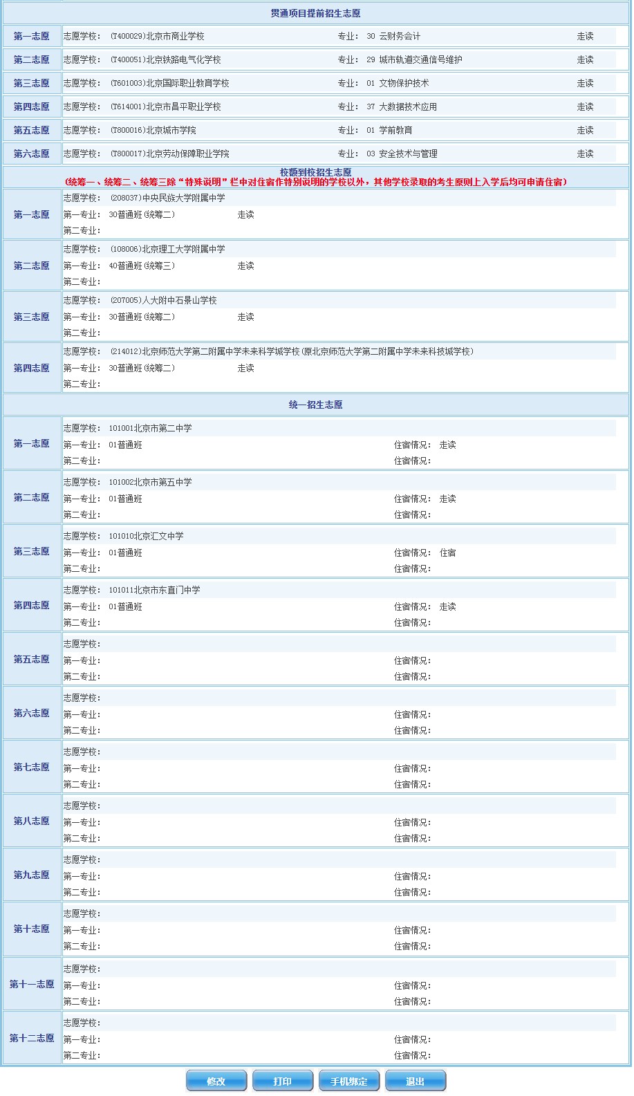 (六)考生所填报的内容是2023年北京市高级中等学校招生录取的重要依据,考生要熟悉了解中招有关政策、实施方法、学校招生要求、上课地点、收费标准等,并按要求认真填报,因填报错误造成后果由考生本人负责。