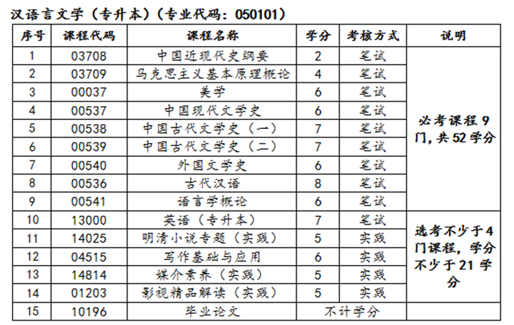 举例:旧计划的汉语言文学(本科)专业,新计划的专业名称变为汉语言文学(专升本)。新计划中的公共政治课和部分专业课沿用了旧计划的课程;英语课从英语(二)调整为英语(专升本),部分专业课也调整为新课。