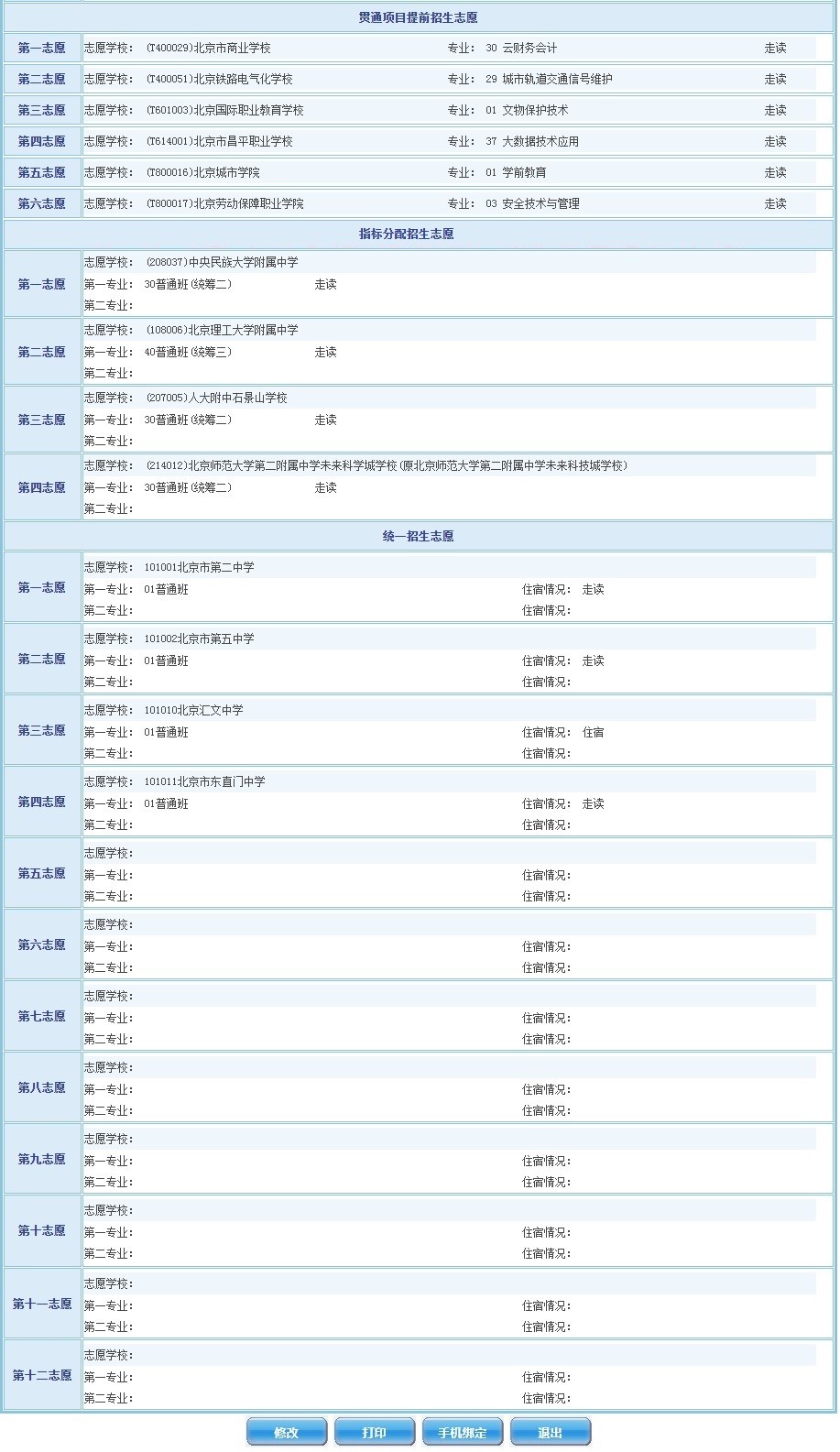 五、考生志愿信息打印